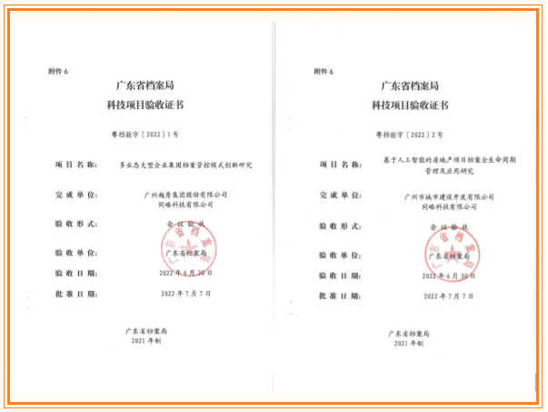 近日,集团总部《多业态大型企业集团档案管控模式创新研究》项目和抖圈地产《基于人工智能的房地产项目档案全生命周期管理及应用研究》项目通过省档案科技项目验收,两个项目获得专家组充分肯定,成为省档案局科技项目管理办法修订后首批通过科技验收的项目。